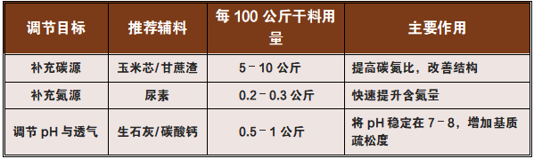 牛粪需充分腐熟,呈黑色无臭味,含氮量约2%,作为主要氮源。按此比例配制的培养基,碳氮比接近28:1,含氮量约1.5%,可通过辅料微调。