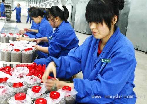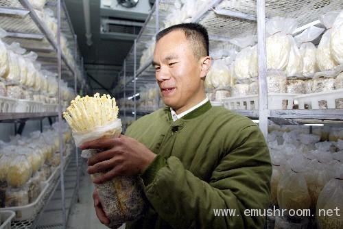 【核心提示】:四川郫县某ManBetX体育企业的工人在出菇车间检查标准化生产培育出的金针菇质量。