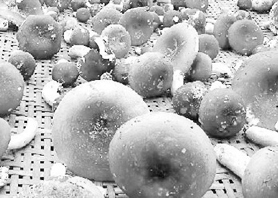 父亲是村里人佩服得五体投地的“抢菇”能手。那些年,家里每年单晾晒好的红菇干就高达二十多公斤,九成是父亲一篓篓从山里“抢”回来的。有了父亲的真传,上初中时,我便成了村里小有名气的“菇王”。每天黎明时分,胆大的我就背上小竹篓,打着小手电随父亲上山。到达一处村人皆知的“菇摊”后,才和父亲“分道扬镳”。他走独家路线,去的是人无我有的菇摊,要尽量小心再小心,以防其他村民跟踪。我闯公共领域,凭的是眼疾手快。当然,不管你有多神速,所“抢”到的菇总是寥寥,加上用“抢”拼的是速度,常常背回家的菇要么“瘸了腿”,要么“残了盖”。
