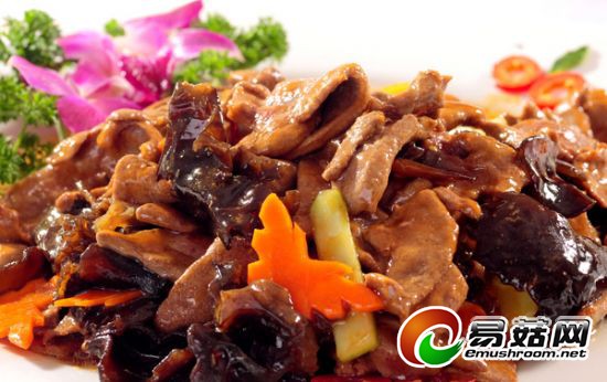主料:猪肝250克,辅料:木耳(干)25克,调料:大葱5克,姜3克,黄酒10克,盐2克,味精1克,香油1克,豌豆淀粉5克,植物油50克