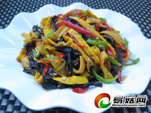 蛋皮炒木耳此菜材料简单,色泽丰富,营养美味,大人孩子都适口,如果蛋皮提前准备好,实际操作起来不需5分钟,实在是宴客时的一道快手菜。