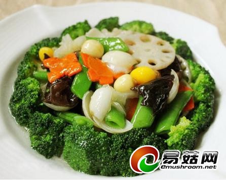 西兰花适量 白蘑菇适量 木耳适量 蒜蓉适量