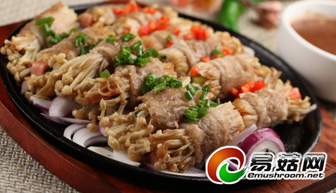 特点:牛肉鲜嫩,蚝油香味突出。牛肉是促进青少年身体发育、增强体力的食品,金针菇具有安神养心的作用。