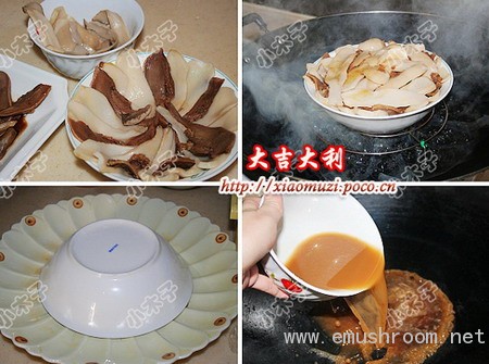 材料:猪舌一条,鸡腿菇3个