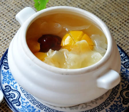 食材:金桔10个、干银耳1个、红枣5个、冰糖20g