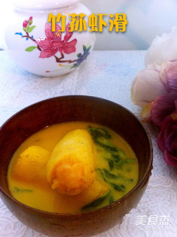 网购了50克竹荪,家里还剩下点青虾虾滑。今天就做个竹荪虾滑吧!配上金黄色的南瓜汁做汤底,营养美味!”
