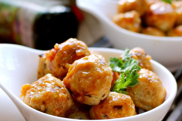 12. 放入丸子,晃动锅子让它们均匀裹上料汁,小火盖盖两分钟