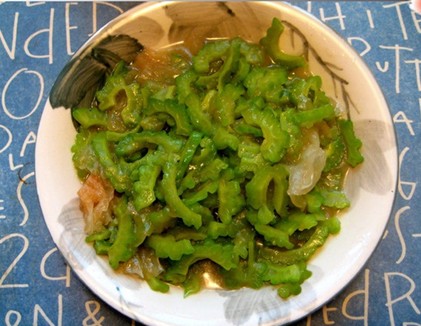 4、捞出苦瓜后切段备用