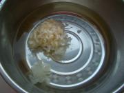 3、银耳摘成小朵朵洗净放到煮锅里。
