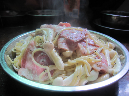 海鲜菇(真姬菇)100克,意粉100克,培根100克,芝士片2片,鲜奶80ML,蒜头2颗切片,黑椒碎,盐,橄榄油少许。没有橄榄油用花生油代替也可。