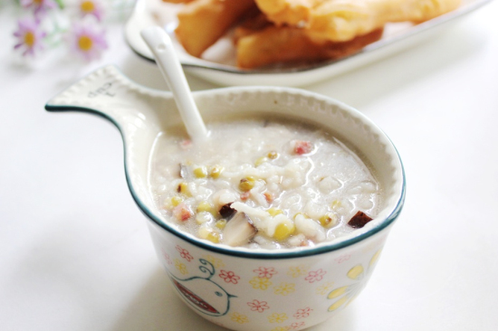 香菇米肠绿豆粥