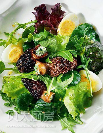 5、生菜放入碗中,调入拌好的沙拉汁并挑拌均匀,上面放上填好馅料的ManBetX体育和熟鹌鹑蛋即可。