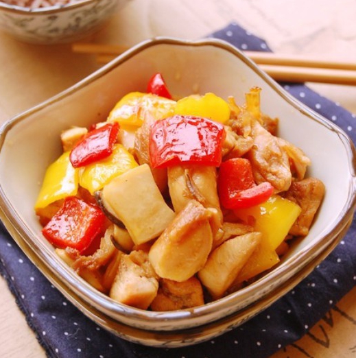 材料:鸡腿,彩椒,杏鲍菇,姜片,蒜,料酒,生抽,老抽,盐,黑胡椒,蜂蜜,糖