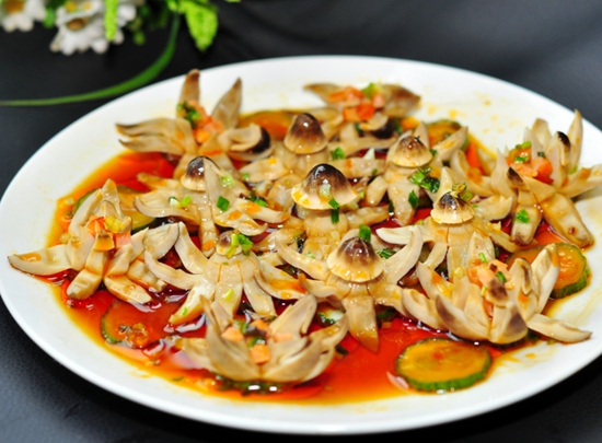 【核心提示】:材料:草菇,黄瓜,火腿,葱,辣椒油,酱油,盐