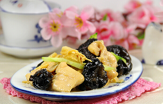 【核心提示】:材料:鸡肉适量、腐竹适量、木耳适量、黄瓜少许、盐适量、生抽少许、糖少许、料酒适量