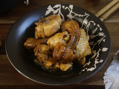 材料:海南文昌鸡600克、姬松茸10朵、姜8片、广东米酒1汤匙、酱油2汤匙、盐1茶匙、糖1/2茶匙、油1汤匙