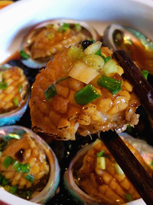 2、新鲜的鲍鱼,借助小汤匙取下鲍鱼肉;