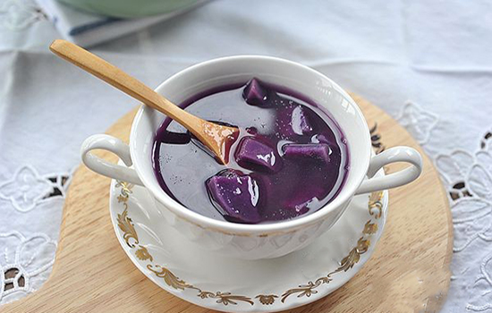 材料:银耳 1/4个、紫薯1个、水适量、土冰糖1块