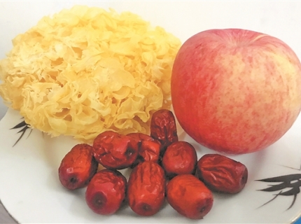 2.面筋用开水冲一下泡去油嗥味,香菇洗净面上改十字花刀(图忘拍了)