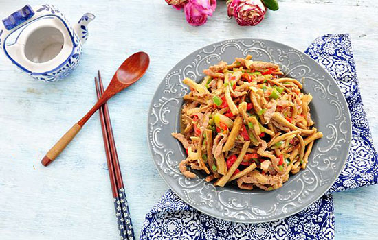 材料:茶树菇80g、洋葱半个、青椒半个、牛肉300g、高度白酒1大勺、 蚝油1大勺、黑胡椒适量、盐适量