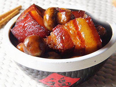 材料:五花肉500克、口蘑300克、白糖2勺、盐1勺、草果2个、白酒1勺、八角2个、桂皮1个、姜1块、花生油100克