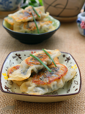 10.为了保证锅贴内部的馅料熟透,撒下一点清水