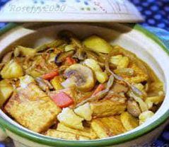 材料:蘑菇6枚、北豆腐1块、冬菇5朵、土豆2个、红萝卜1截、豆角干1把、虫草花1把、蚝油2大匙、胡椒粉1小匙、生抽1大匙、精盐1/4小匙、白糖1/2小匙