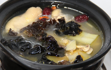 7、鸡汤炖约2小时,是老鸡哦。出锅前15分钟加入黑木耳煮熟即可。