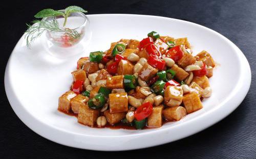 8、倒入辣花生炒匀