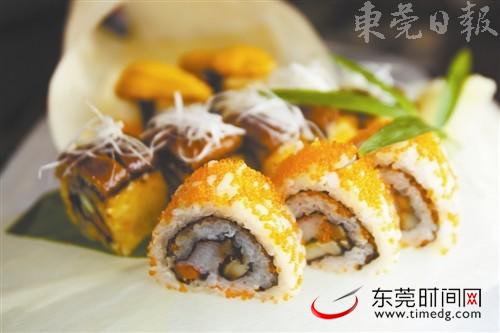 有煮松茸寿司卷、松茸蟹子卷和海胆松茸寿司三种可供选择。以松茸菌为主料,沾少许芥末,一口吞下,怀旧与醇香尽在口中。
