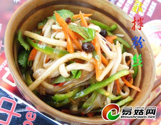 3. 盆里放金针菇、尖椒丝、红咸菜丝、粉丝、胡萝卜丝