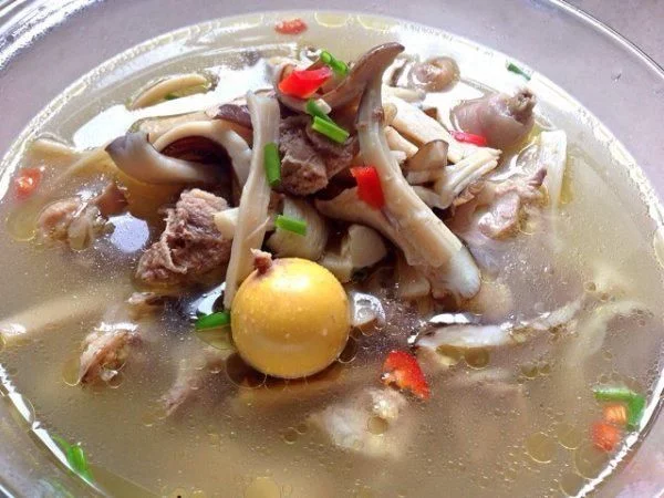 鸡油菌因其全身黄色且晶莹透亮,形似鸡油,因此得名。鸡油菌含有丰富的蛋白质、氨基酸、脂肪、碳水化合物、维生素、胡萝卜素、粗纤维和钙、铁、磷等多种矿物质营养成分。鸡油菌炖肉是很不错的美味,首先把肉洗净放入沸水锅悼去血水捞出洗净斩块鸡油菌用温水泡发去杂洗净用刀切成片 。然后锅烧热加猪油放入猪油煸炒片刻烹入料酒加入精盐、姜片、葱段、肉汤武火烧沸撇去泡沫加入鸡油菌烧沸改文火炖至肉熟透拣去葱、姜用味精、胡椒粉调味即成。