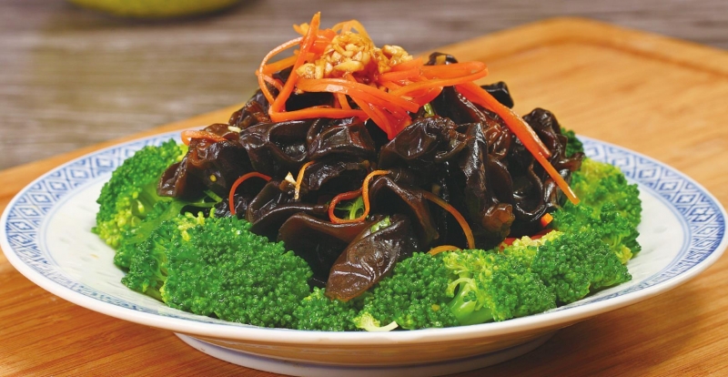 2、剪去木耳的根蒂,撕成小块,备用。