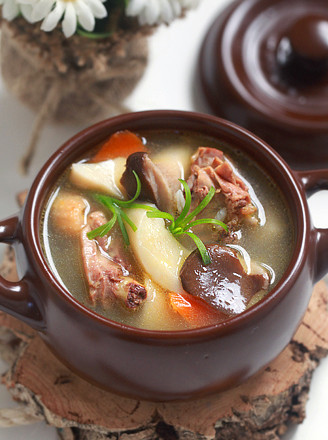 4、小火炖1小时候加入胡萝卜和杏鲍菇,再同炖15分钟左右,加盐调味即可出锅,非常的鲜美;