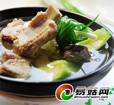 2.飞水的排骨一次加入清水,旺火煮沸,加入半勺醋,转文火煲30分钟,丝瓜削皮,切滚刀块。待排骨汤8分熟时,将丝瓜、平菇入锅,再煲10~15分钟,加盐和白胡椒粉就可以了