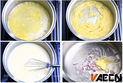 【核心提示】:需要的食材:做法:1.黄油炒面找一个厚底锅座在火上(薄的锅容易糊底),将100克黄油在锅中融化2.加入120克面粉,把面粉炒熟炒香