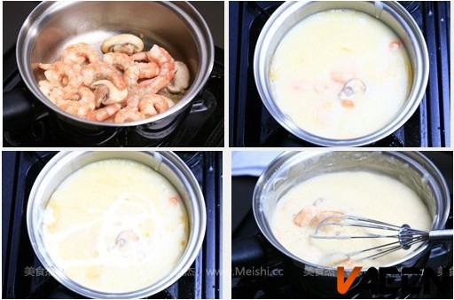 7.待蘑菇面酱汤开锅后,加入100克奶油