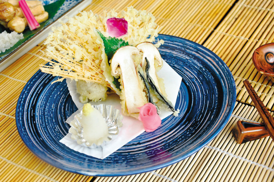 日本人习惯于秋季食用松茸料理,刚采下来,用松枝火烤食,有来自深山的松树林味,秋高气爽之日,携好友散坐于林边草地,红叶漫天,野花生发,顿生诗意。广州建国酒店“涟”日本料理和盈丰阁中餐厅的总厨采用新鲜松茸设计了多款松茸美馔,其中的“涟”日本料理推出烤松茸、松茸蒸蛋、松茸炒饭、松茸海鲜汤等。