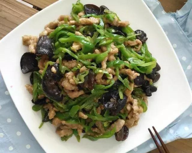 食材:木耳、猪肉、青椒、葱、姜、料酒、酱油、食盐、白砂糖。做法步骤: