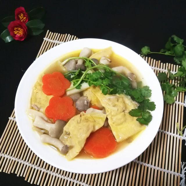 鲜菇冬笋蛋饺汤,汤鲜味美,鲜美极了