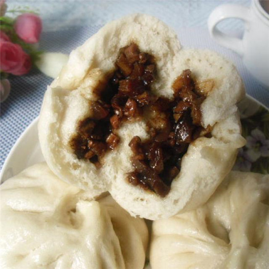 原料:猪肉、干笋、香菇、糖、姜、面粉、酵母、酱油、料酒、甜面酱、黄酱、鸡精、油、盐。
