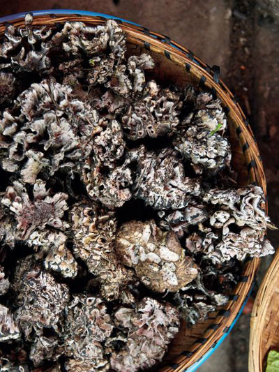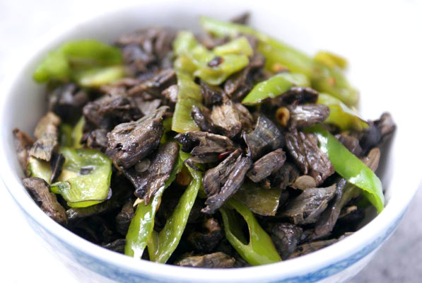 只有杂质很少的上品干巴菌,才能够保证在清理和清洗过程中,不会过度伤害其独特的香气。最顶级的干巴菌,只需精心撕成小丁后,略加冲洗。以干巴菌的天赋,爆炒为妙,油盐和一点青辣椒以外,其他作料都是大不敬,伤气夺味。在盛产干巴菌的世界,云南街头参观,常有卖干巴菌炒饭的,只下一点,那饭便清香扑鼻。有厨师用少量干巴菌加诸清蒸鳜鱼等海、河鲜间,并非点缀,食材间的鲜香互相推进,相辅相成,清者自清,鲜者仍鲜,不失为一种搭配方法。除了香气,上品干巴菌恰到好处的弹性咬口,任何菌类都无法与之比肩。