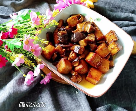 鱼豆腐烧香菇,咸鲜入味,味道超级棒