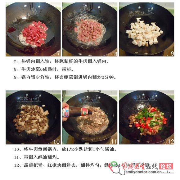 平时我们喜欢把牛肉切成簿片来炒,炒完后是不是觉得牛肉都缩水变小了呢?呵呵!今天做这道杏鲍菇炒牛肉,把牛肉切成小块,就不会缩得那么小了。