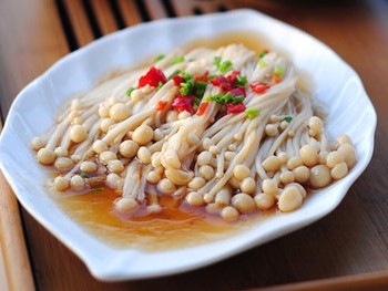 吃一些开胃、清单的菜,能缓解苦夏的症状,比如今天教的蒸菜——金针菇,金针菇不仅味道鲜美,而且营养丰富,是拌凉菜和火锅食品的主打菜之一,金针菇能有效地增强机体的生物活性,促进体内新陈代谢,有利于食物中各种营养素的吸收和利用,对生长发育也大有益处。金针菇蒸着吃,配上开胃的郫县豆瓣酱,能提高你的食欲哦!
