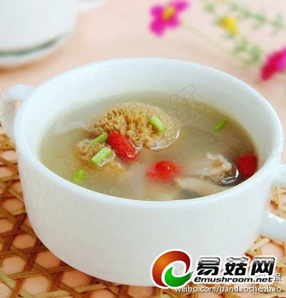 3、砂锅中放水,加入焯好的鸡块,把猴头菇撕成小块放入,再放入料酒、葱、姜,大火煮开后转小火炖一个小时。最后加入枸杞,加盐调味即可。