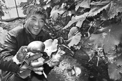 5月6日,记者在沈阳市苏家屯区永乐农业经济区葡萄、蘑菇套种实验大棚里,看到农户们正在葡萄枝干下面,采摘像小伞一样的新鲜蘑菇。据了解,在葡萄大棚里搞起球盖菇与葡萄套种技术实验,如今已经成功,每个大棚可为农民增收万元。