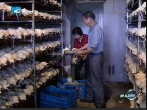 技术员 吴寿生:一批采下来,一筒产量1两5至1两7干品。按目前市场价格每斤批发价28元至29元。全部采下来(收入)能有4块多钱,除了1块钱的成本,还有3块多钱。(就是说,它这个效益还是不错的。)效益是相当高的,比种香菇、木耳,起码要高3倍到4倍。