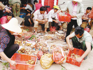 昨日,从野生菌批发市场及农贸市场上了解到,青头菌120—200元/公斤、干巴菌250—500元/公斤、鸡枞160—200元/公斤、古树菌60—90元/公斤。来自晋宁的商贩张先生说,与端午节期间相比,所有菌子平均降幅达40%。