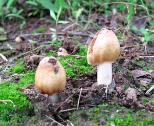毛头鬼伞:又名鸡腿菇,一般可食用。但含有石炭酸等胃肠道刺激物,还含有腺嘌呤、胆碱、精胺、酪胺和色胺等多种生物碱以及甾醇脂等,与酒类如啤酒同吃容易引起中毒。